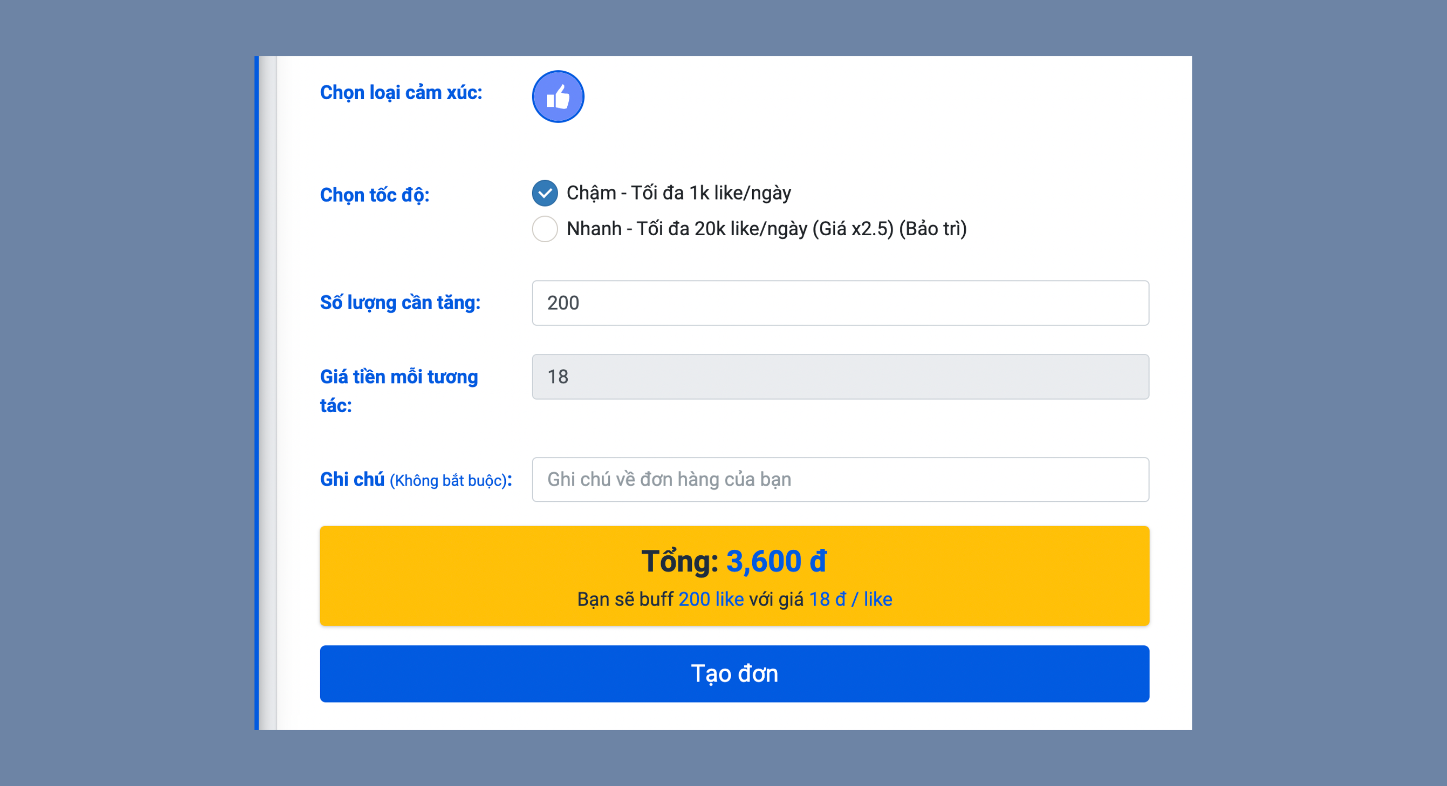 Điền những thông tin cần thiết theo hướng dẫn khi bạn nhấn vào mục tăng like bài viết