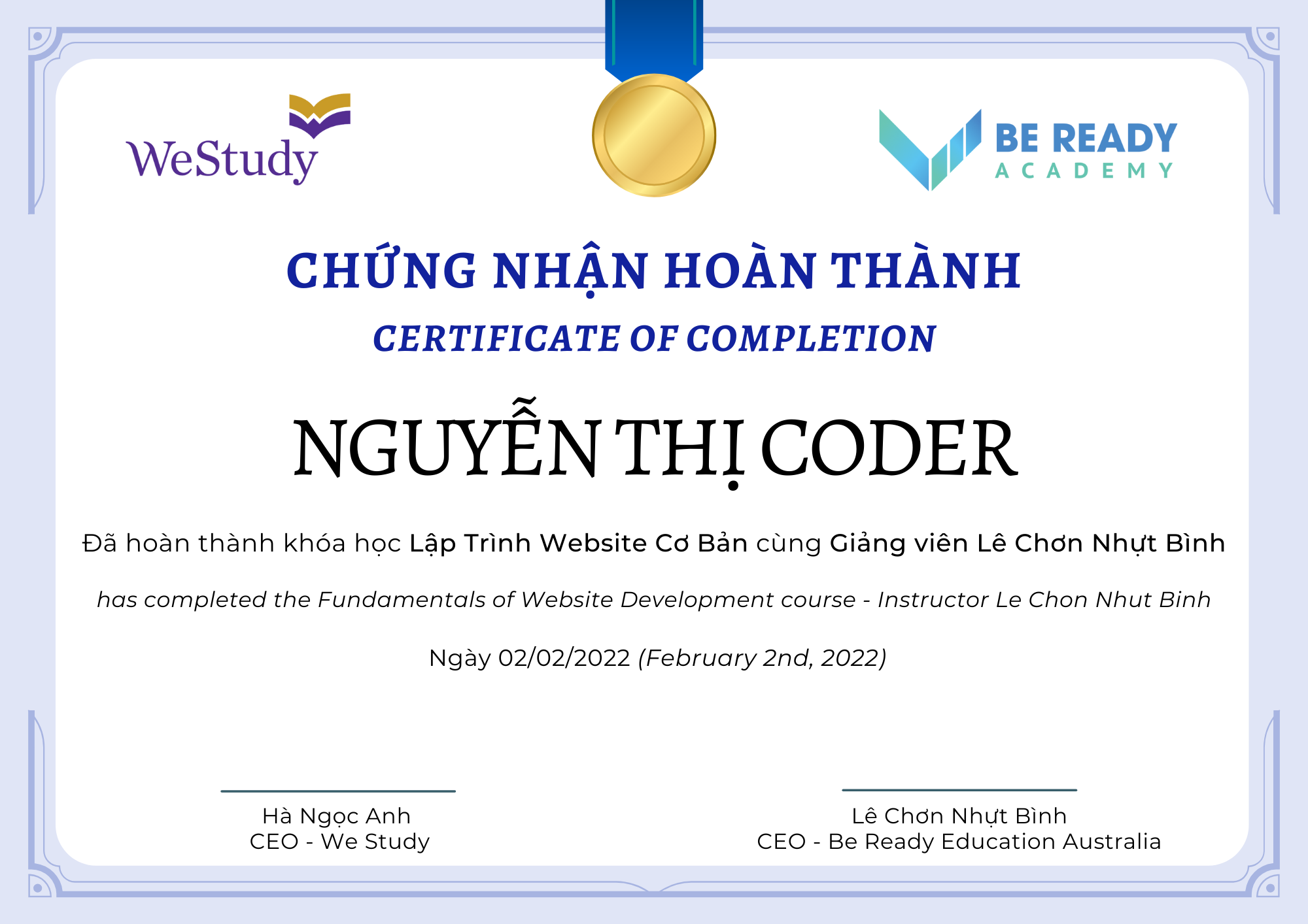 Yêu cầu tối thiểu là các bạn phải hoàn tất các bài học và các bài thực hành. Sau đó bạn sẽ có thể nộp đơn xin thực tập kèm CV, Be Ready Education Australia sẽ phỏng vấn và cho bạn biết kết quả.