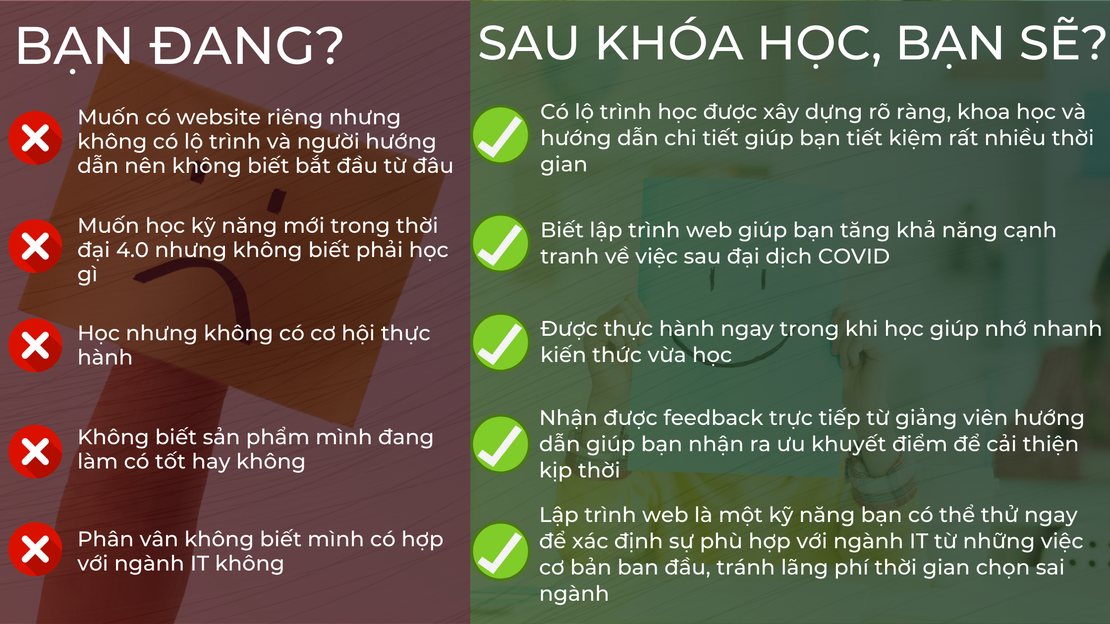 - Người đi làm ngành không liên quan đến CNTT: Học để làm quen ngành, có ý định chuyển ngành, đồng thời có thể tạo website để tăng thu nhập.